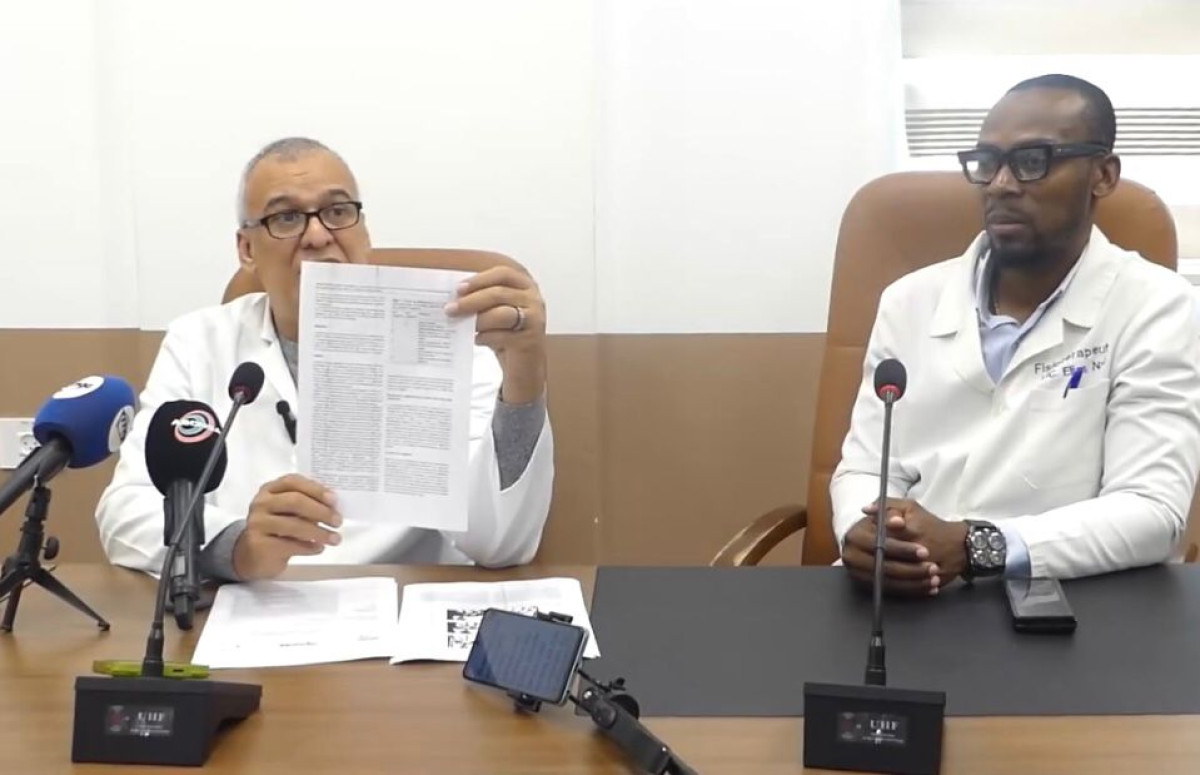 El Director General de Medicina Deportiva y Jefe Médico de la FEGUIFUT, Elías Nzó, acompañado del radiólogo Nicasio Rojas, compareció ante los medios de comunicación en la Clínica Virgen de Guadalupe de Malabo para pronunciarse sobre la situación del Nzalang Sub-17, cuya presencia en el Torneo UNIFFAC 2026, previsto en la República Democrática del Congo, permanece en incertidumbre.