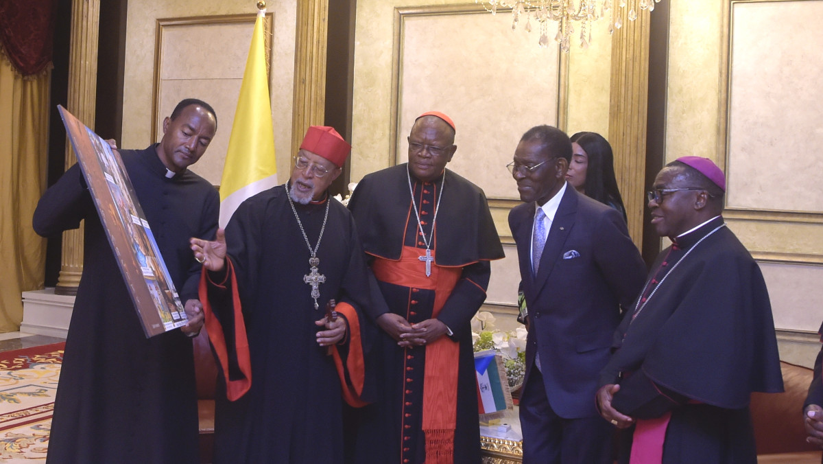 -“Estamos eufóricos por haber sido recibidos por el Señor Presidente de la República. Yo vengo de Kinsasha y soy el Arzobispo Metropolitano, pero sobre todo presidente del Simposio de Conferencias Episcopales de África y Madagascar. En este contexto, el conjunto de todas las iglesias africanas estamos aquí para este gran evento de la llegada del Papa León XIV mañana, aquí, en Malabo. Hemos venido a recibirle, estar unidos entre hermanos para mostrar nuestra alegría al recibir al Papa”, ha dicho Monseñor Fridolin Ambongo. “Hemos venido igualmente a expresar al Señor Presidente nuestra gratitud, la gratitud de todas las iglesias africanas por todo lo que es y hace un panafricano para esta gran Iglesia Católica Africana”, ha continuado.