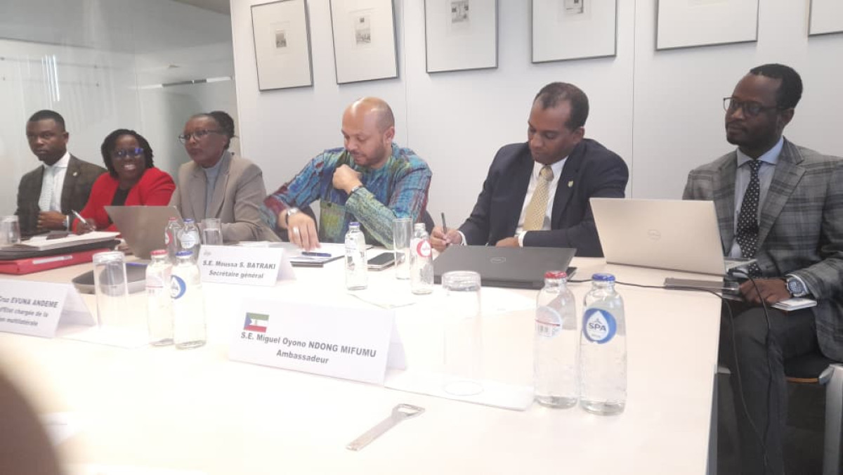 Arropada por el personal de la Misión Diplomática de la República de Guinea Ecuatorial acreditado en Bruselas, encabezado por el Embajador Miguel Oyono Ndong Mifumu, la Secretaria de Estado concluía su agenda oficial de trabajo en Bruselas con la reunión mantenida a últimas horas del día 15 con el Secretario General de la OEACP, Moussa Natal Saleh Batraki, para perfilar y asentar las bases sobre las decisiones adoptadas en la clausura del Consejo de Ministros y coordinar diferentes aspectos relacionados con los preparativos de la cumbre.