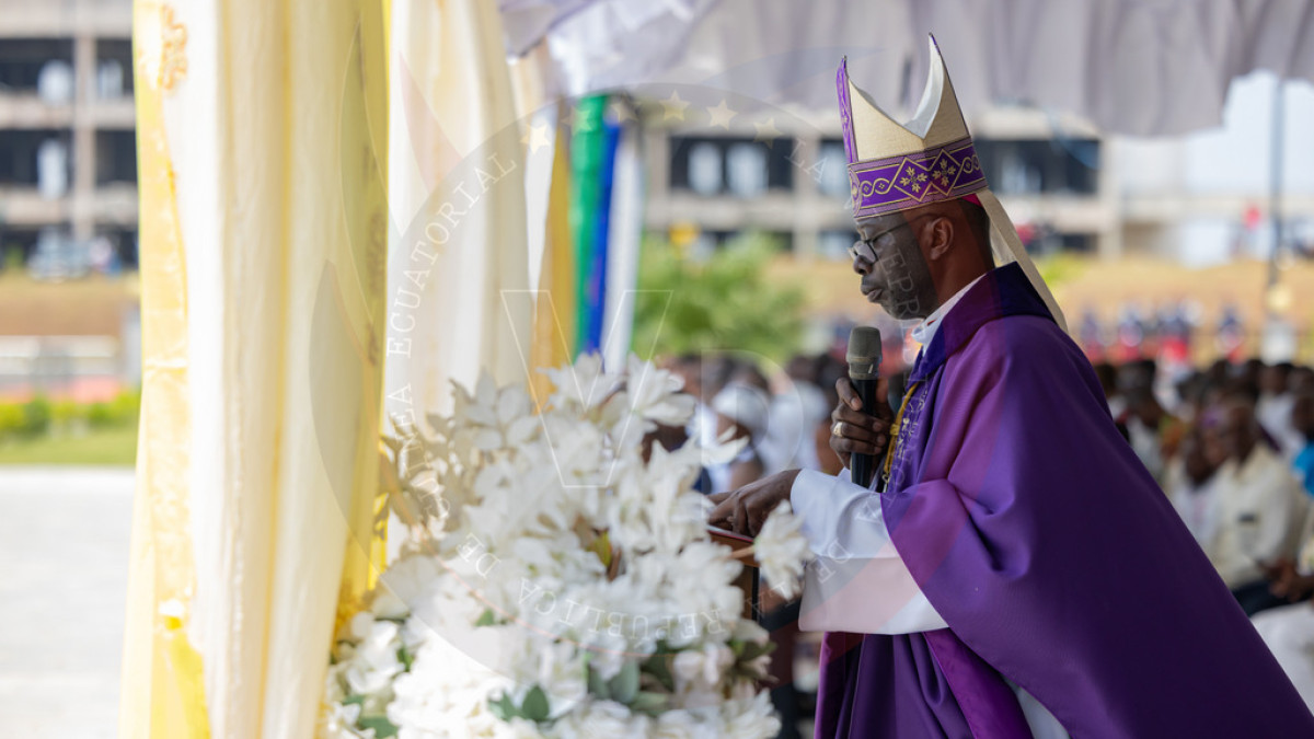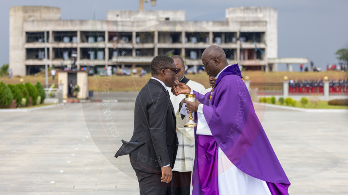 El acto, celebrado en la zona cero de las explosiones, se inició con una solemne misa de réquiem oficiada por el Obispo de la Diócesis de Evinayong, Monseñor Calixto Paulino Esono Abaga Obono, quien elevó oraciones por el descanso eterno de las almas de los fallecidos y por el consuelo de sus familias; seguido de la lectura de los nombres de los fallecidos el día 7 de marzo del año 2021, a cargo del Ministro Delegado de Defensa Nacional, Candido Nkogo Engono.