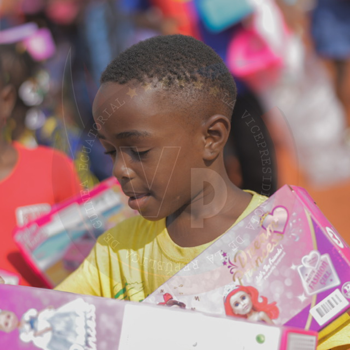 Sonrisas y caras emocionadas ha sido el estado de ánimo de los niños después de recibir los juguetes ofrecidos por S.E. Nguema Obiang Mangue.