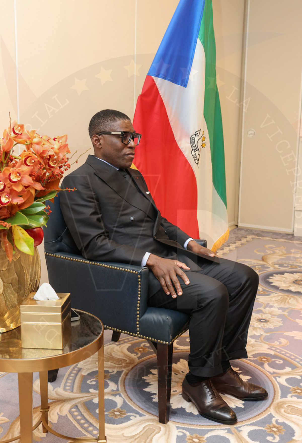 Prosiguiendo con su agenda de trabajo correspondientes este miércoles, 1 de octubre, Nguema Obiang Mangue también se ha sentado en la mesa de conversaciones con Dan Diana, representante de la empresa americana con sede en Washington DC, Alpine armoring.