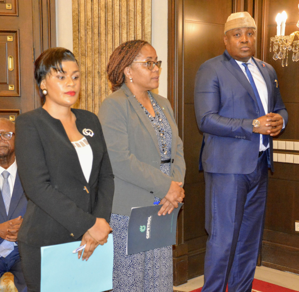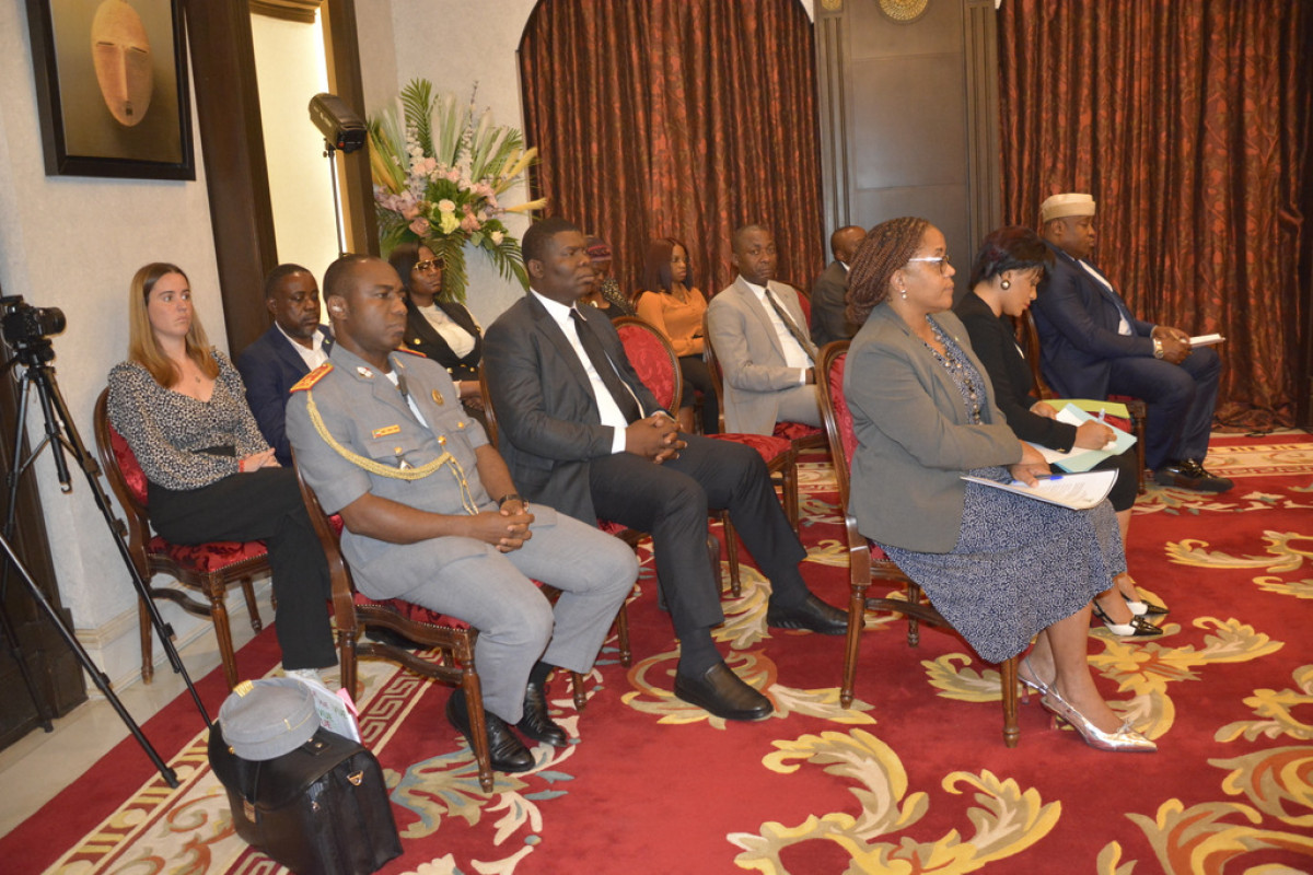 En la sala de prensa del Palacio del Pueblo de Malabo han asistido al Jefe de Estado varios ministros, consejeros y directores generales.