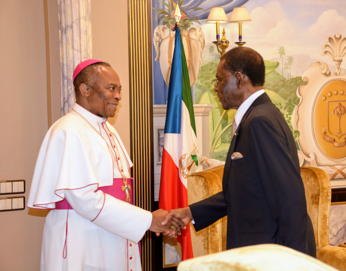 S.E. Obiang Nguema Mbasogo recibe al Arzobispo de Malabo, Juan Nsue Edjang